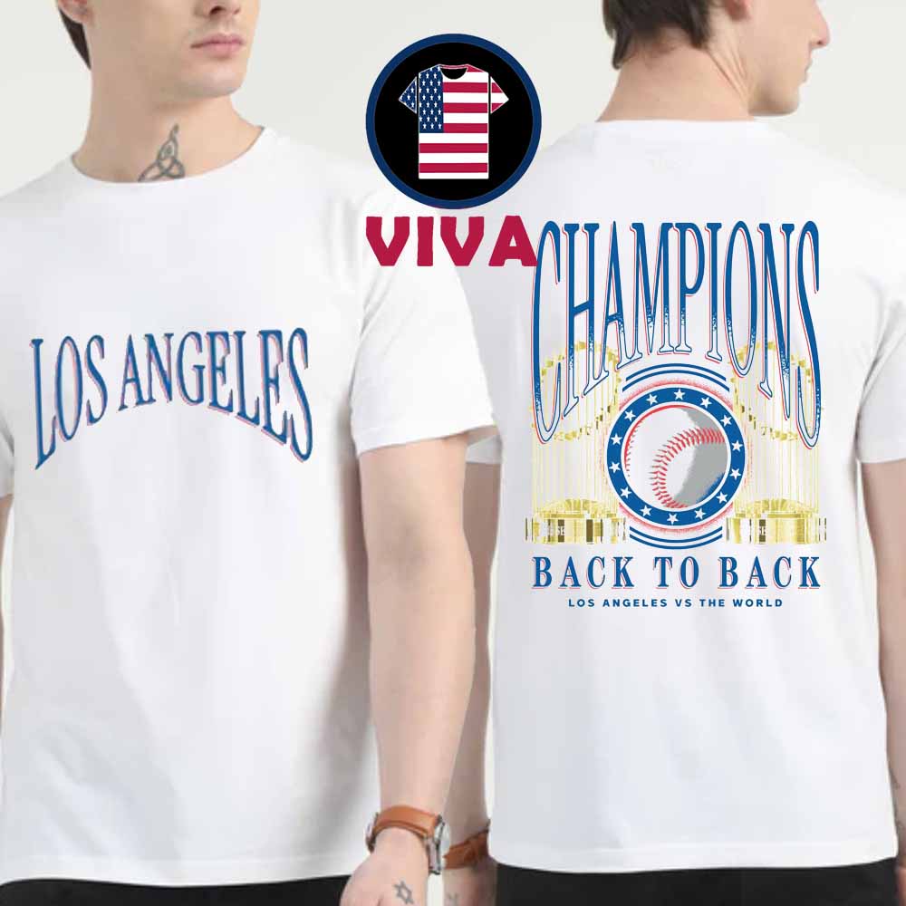 Welcome to Vivateeca – Trendy Apparel Inspired by Los Angeles Dodgers 2025 MLB World Series Champions Back To Back Trophies Two Sided T-Shirt Hoodie