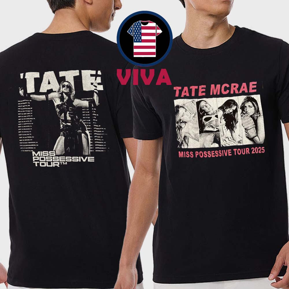 Welcome to Vivateeca – Trendy Apparel Inspired by Tate McRae Miss Possessive 2025 Tour Dates Photo Two Sided T-Shirt