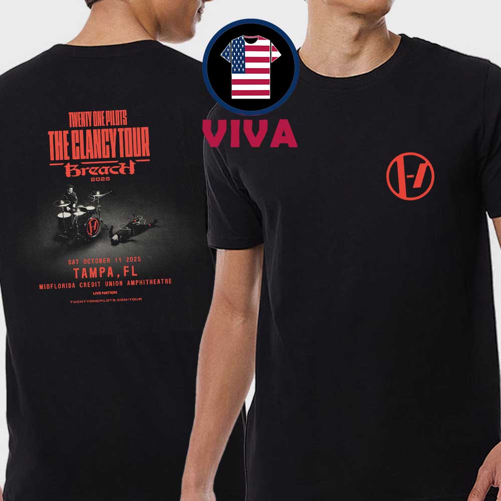 Twenty One Pilots Tampa FL 2025 MIDFLORIDA Credit Union Amphitheatre Breach The Clancy Tour Two Sided T-Shirt